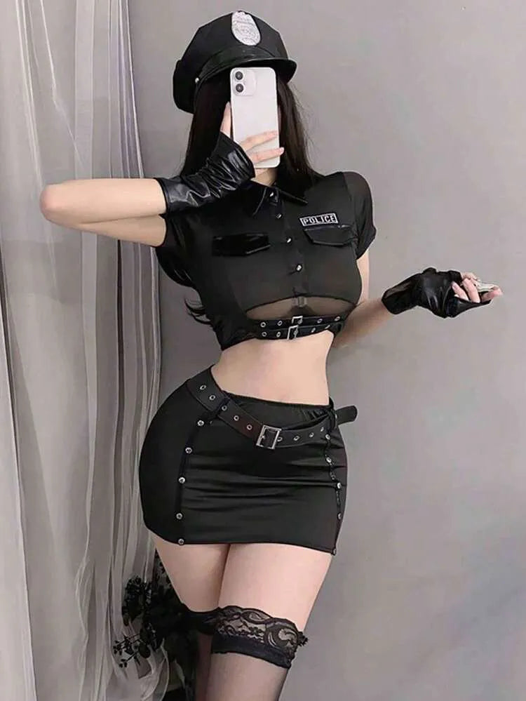 1 set Costume de jeu de rôle pour femme, uniforme de cosplay, tenue de la Saint-Valentin, cadeau de la Saint-Valentin Noir printemps