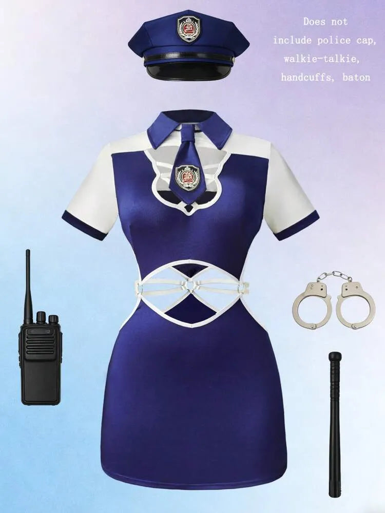 2 pièces Ensemble de lingerie pour femmes, comprenant 1 pièce de robe à contraste de couleur avec décolleté et taille ajourés et 1 pièce de cravate à revers, un ensemble d’uniforme confortable et charmant pour dames