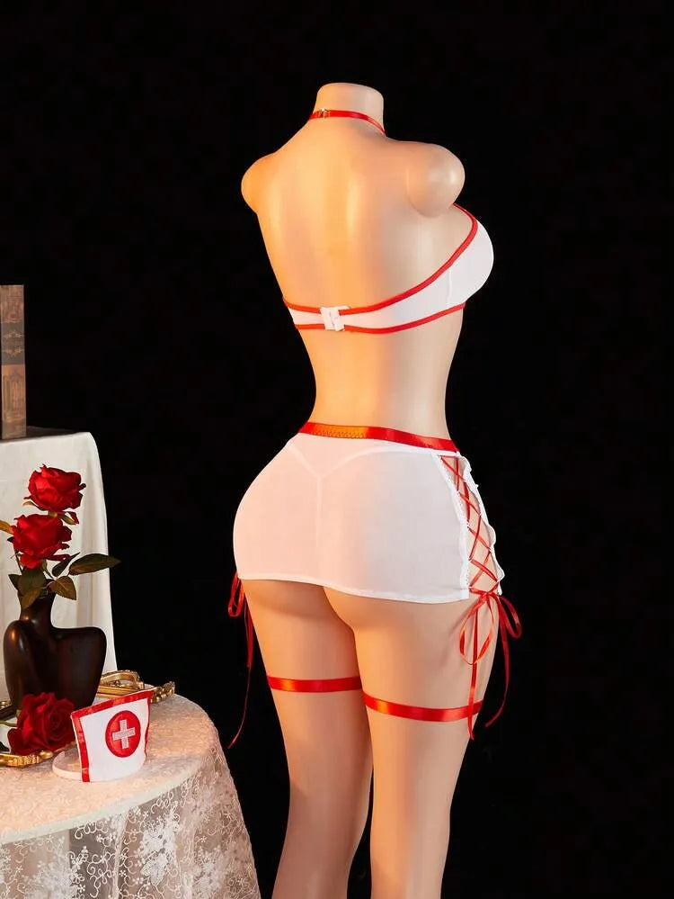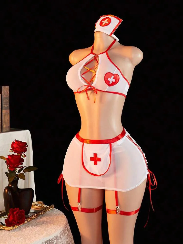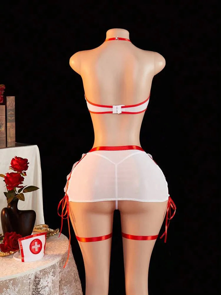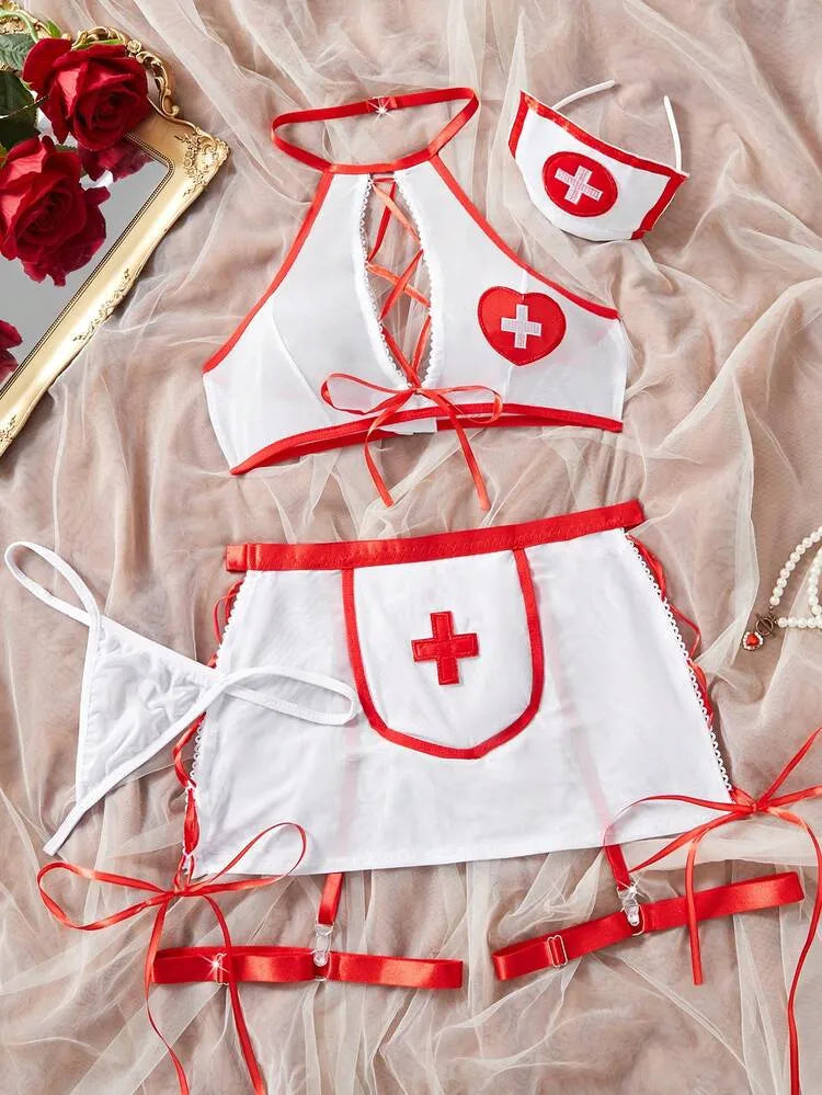 5 pièces/Set Ensemble de lingerie se*x*y pour femmes avec décolleté plongeant et fente, idéal pour la maison, les boîtes de nuit, les fêtes privées ou le cosplay. Sous-vêtements sexy
